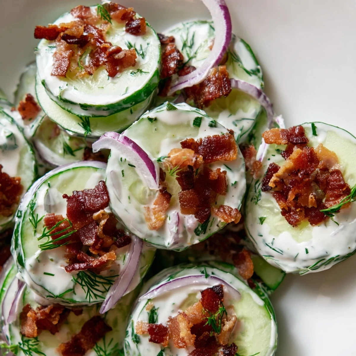 Yes, this salad actually benefits from chilling for up to one hour before serving. The cucumbers absorb the tangy dressing flavors, and the bacon maintains its crunch. For longer storage, keep the bacon separate and add just before serving.