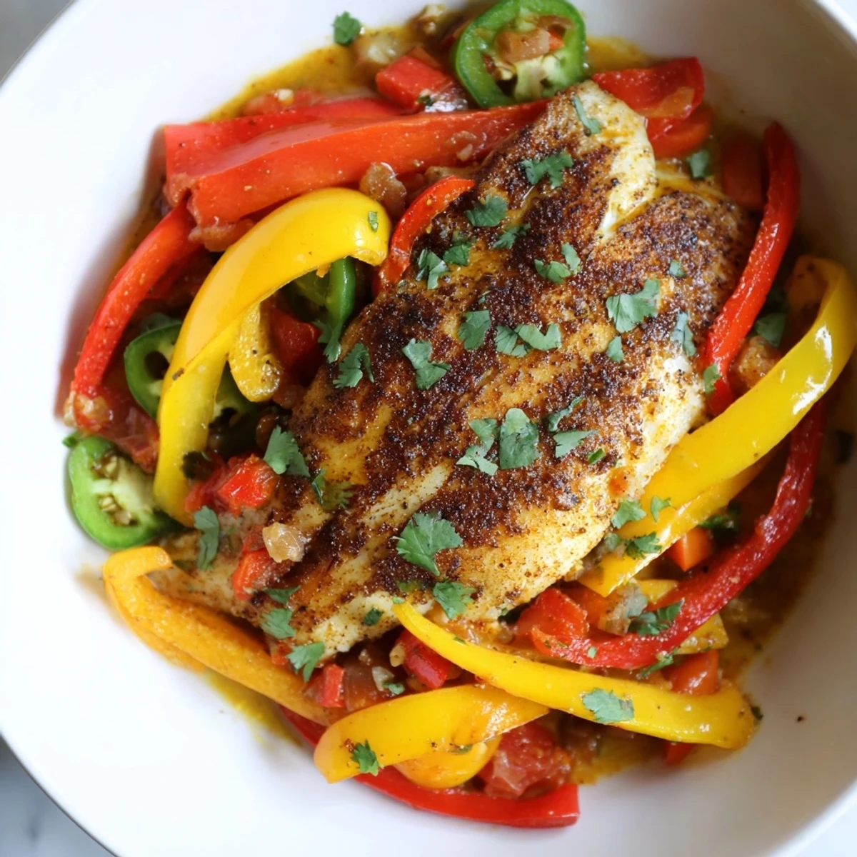 This vibrant skillet combines tender tilapia with a medley of roasted red and yellow peppers, jalapeño, and aromatic spices. The fish is seared to golden perfection, then simmered in a smoky tomato-based sauce with smoked paprika, cumin, and chili flakes. Fresh lime and cilantro brighten the dish just before serving. Ready in just 35 minutes, this gluten-free and dairy-free main serves four and delivers restaurant-quality flavors with minimal effort.